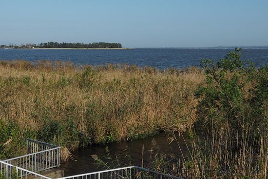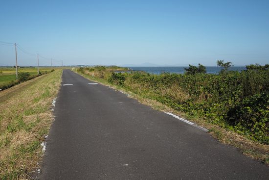 稲敷大橋を過ぎ湖畔を進むと、前方に和田岬の先端が見えてきます。