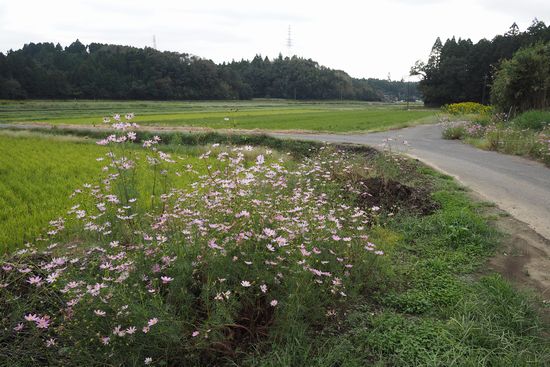 若草牧場から木戸川に降りてきて、木戸川沿いに下っていきます。路傍に咲くコスモスに秋を感じます。