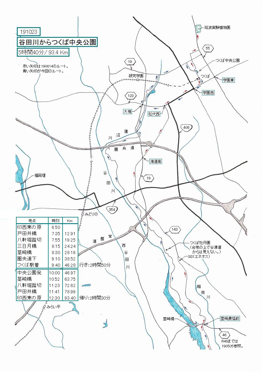 191023 距離:46.3Km 所要時間(往復の平均);2時間40分