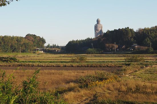 乙戸川右岸の谷津道を進んで行きます。牛久大仏を正面から見る位置に来ました。