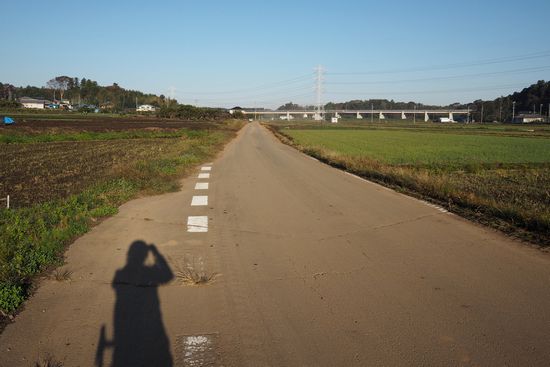 遠くに高架道が見えてきました。圏央道です。谷津道のすぐ傍に、牛久阿見インターがあります。