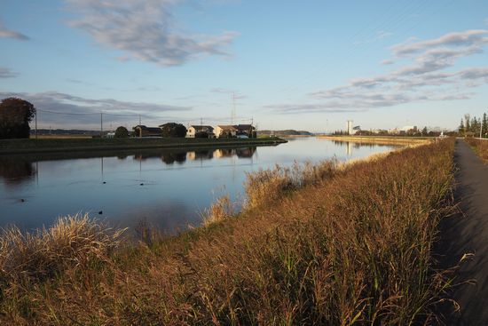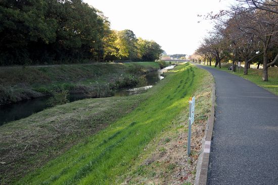 手賀沼を過ぎて、大堀川遊歩道に来ました。このあたりの大堀川は、河岸がコンクリートではなく