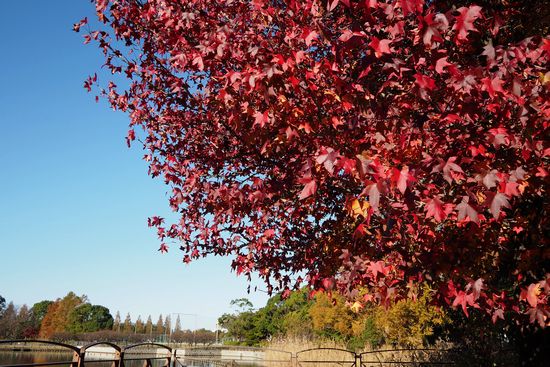 なので、思いついたのが柏の葉公園です。なにせ広い公園(県立)なので、数あるなかには早めに紅葉した木