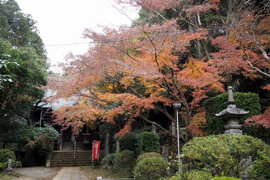 大師堂と紅葉。陽が射していないため、紅葉の発色が今一つ冴えません。