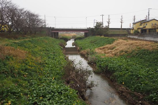蓮沼川を渡った地点から、来た方向を撮っている。ここから川沿いに下っていく。