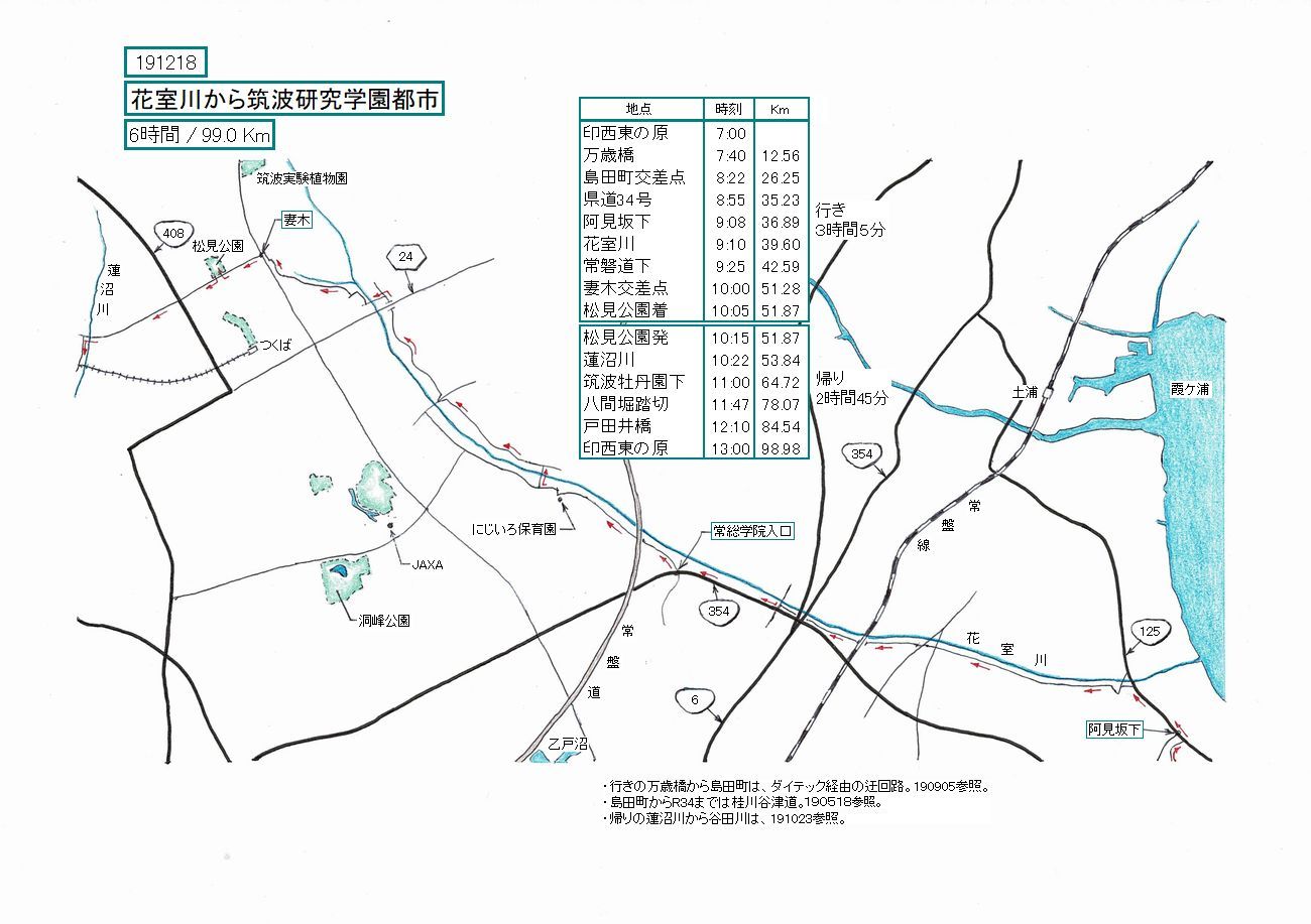 帰途は、蓮沼川〜谷田川〜牛久沼という191023のルートをとりました。