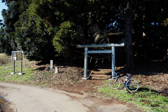 さて、急坂を登って舟塚山古墳に着きました。説明看板と鹿島神社があります。神社の社殿裏の踏跡を登ると、
