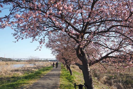 県道190号から神崎川経由し新川に出ました。河津桜は咲いていました。