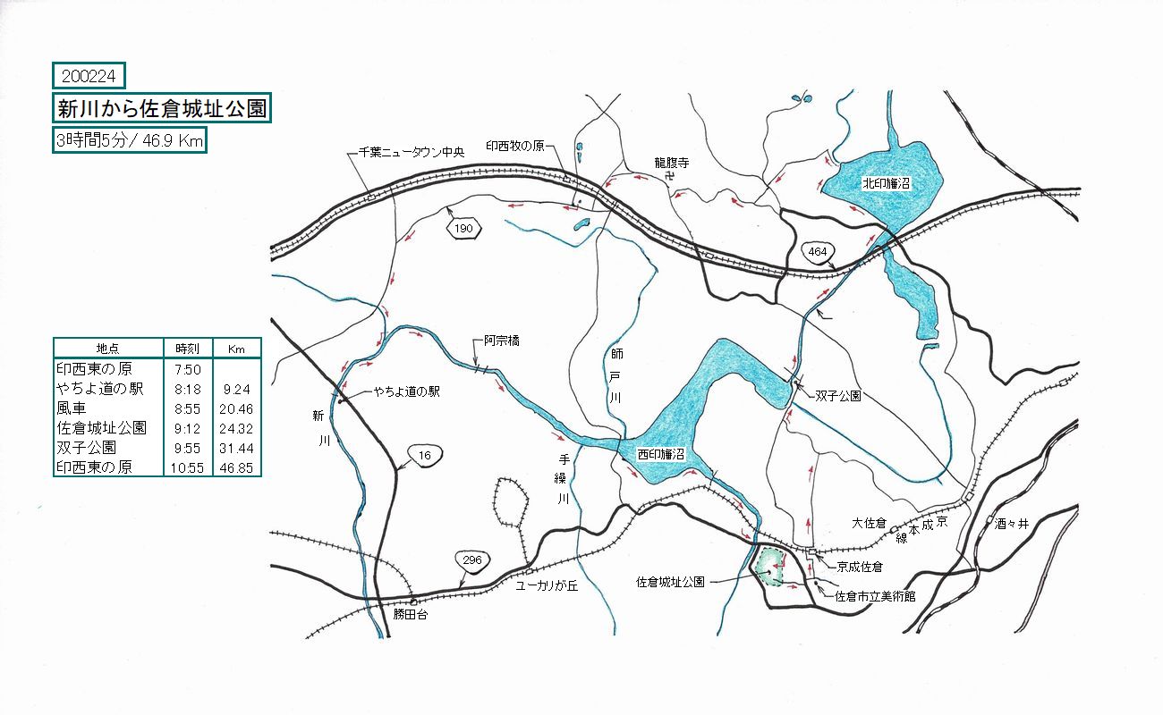 市立美術館の前を下り、京成佐倉駅の北側に出て、双子公園経由、印旛沼捷水路を通過します。