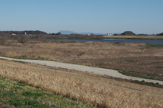 東の原から布佐駅経由で利根川右岸CRに出ました。栄橋から300m上流の地点です。筑波山が