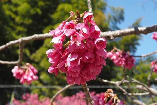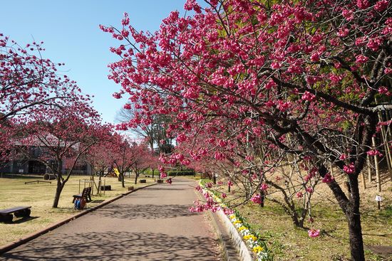 公園内は寒緋桜が満開でした。最近あちこちで河津桜が有名ですが、寒緋桜とオオシマザクラの