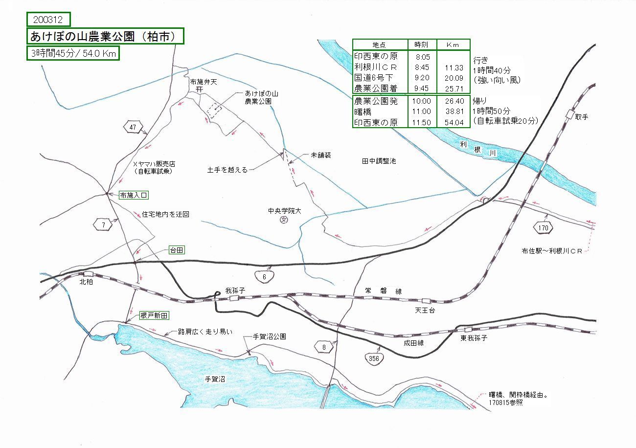 利根川右岸のサイクリングロードからあけぼの山農業公園へ、更に手賀沼北岸を通って帰ってきました。