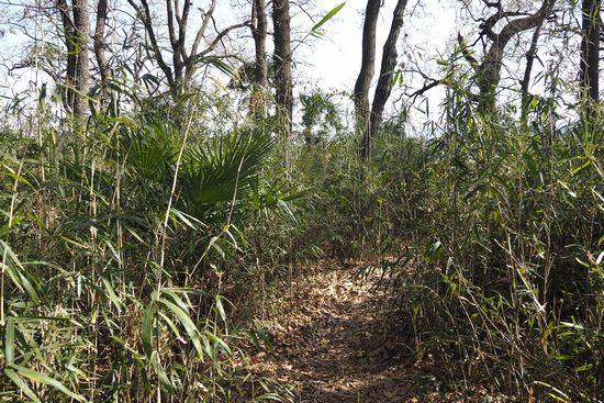 後円部の頂上に登ってみました。背の高い篠竹の密生で、視界は利きません。