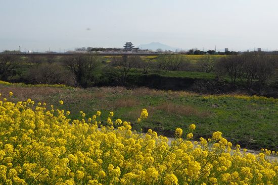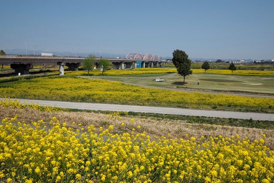 今の季節、利根川CRは菜の花の黄色に染まります。これは加須未来館前です。
