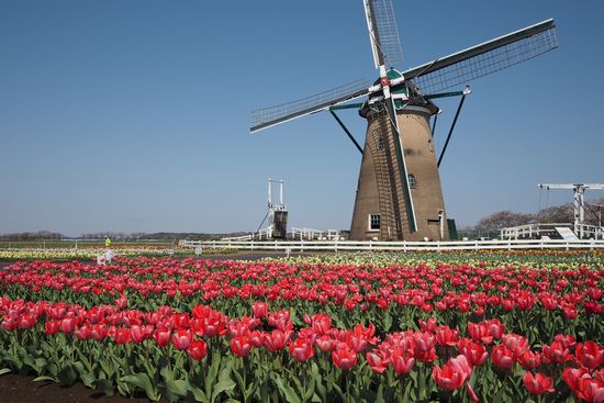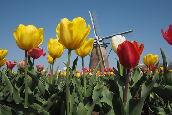 チューリップと風車。これを見ないと春が来た気分がしません。
