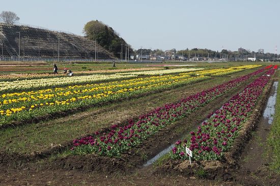 開花が早く、3月31日に家族で桜見物をしてしまいました。なので、今回はチューリップのみの見学となりました。