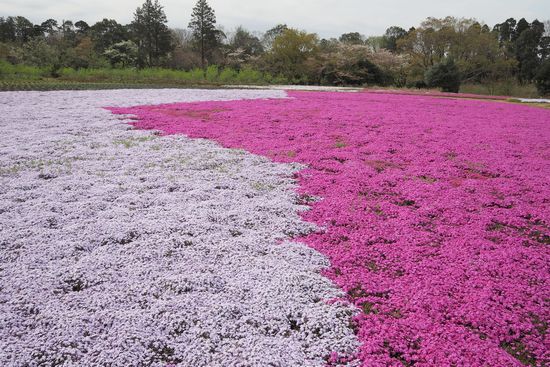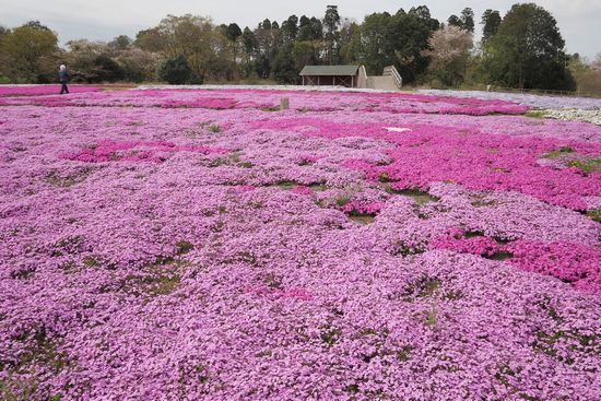 広々とした敷地内に植えられた芝さくらは、なかなかの見応えがあります。暑からず寒からず、里山のそこここに花が