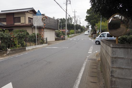 谷津を横断する御成街道。ここを進み、長い坂を登り切ったあたりで、標識に従い、左折します。