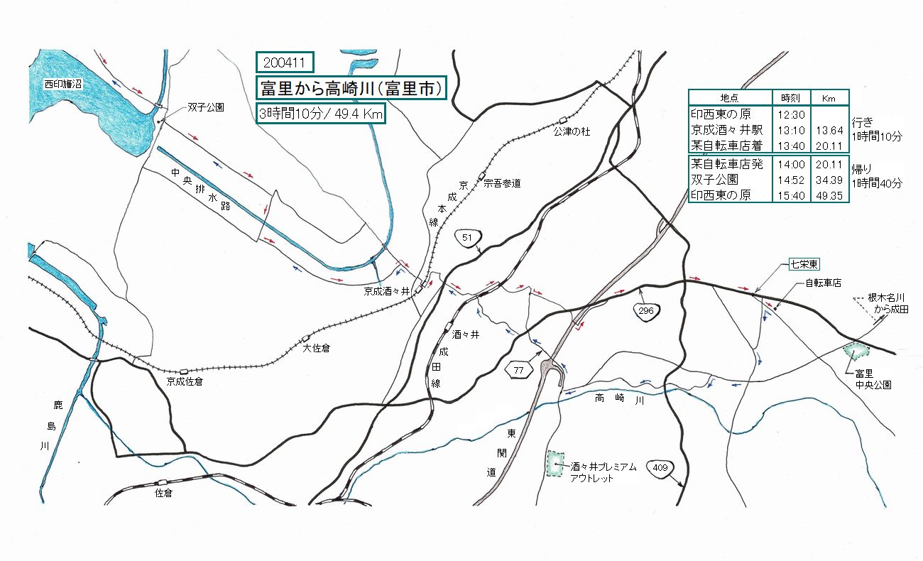 双子公園から酒々井方向に向かう真っすぐな道。行きは向い風、帰りは追い風でした。