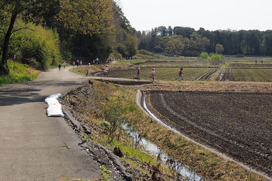 高崎自然の森を過ぎたあたりで、大勢の幼稚園児が走ってくるのと遭遇。田舎の幼稚園児は野外で
