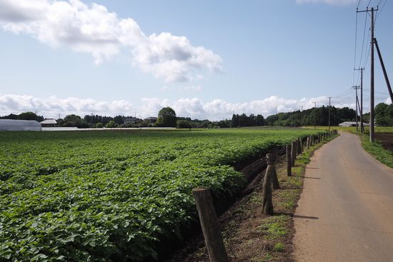 これはジャガイモ畑。途中、何ヶ所か馬関係の施設(トレーニングセンター、牧場)があります。