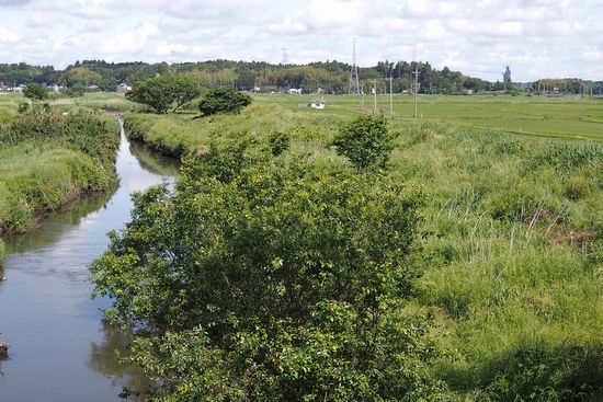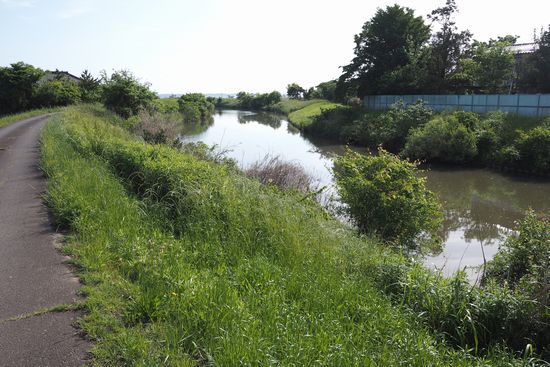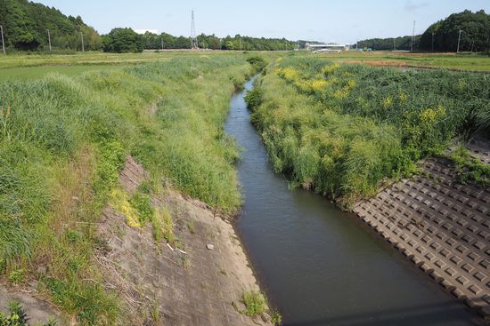 小野川を渡ると、いつもの通いなれた道にでます。これは上流方向を撮っています。右遠くに牛久大仏