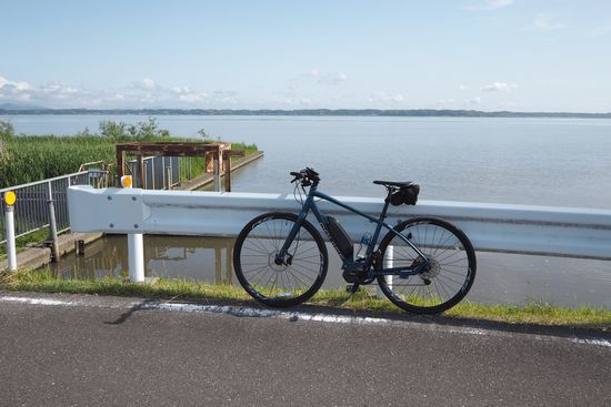 E-Bike「クルーズ号」の記念撮影。今日は湖岸を走る予定は無く、このまま帰ります。