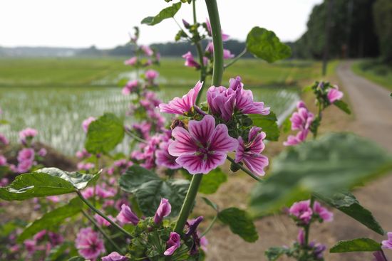ここは四街道クリーンセンターを過ぎた鹿島川谷津道。ゼニアオイの花が咲いていました。
