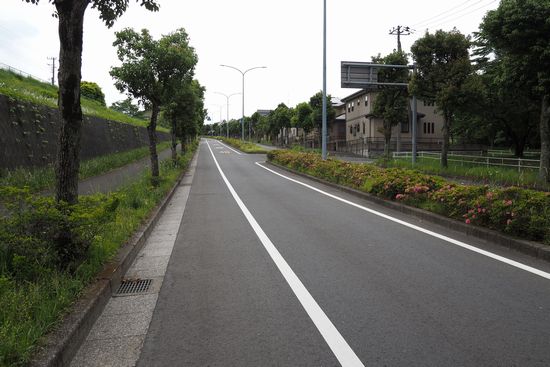 あすみが丘南交差点を過ぎて、あすみが丘9交差点に向かう道。登り坂です。土気駅から南に向かいなだらかに