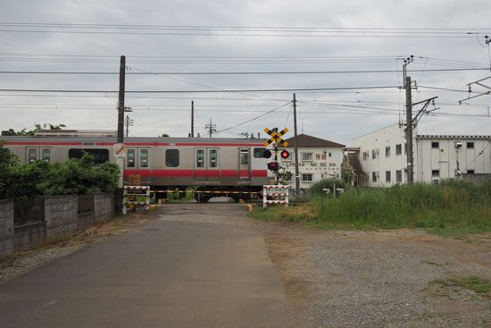 県道20号を横断し、すぐに外房線の踏切です。電車通過中。