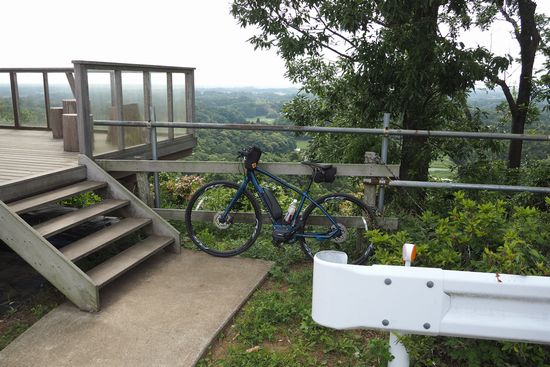 展望台に自転車を持ち上げて撮った写真を見たことがあるので、真似しようとしましたが、自転車が重いので