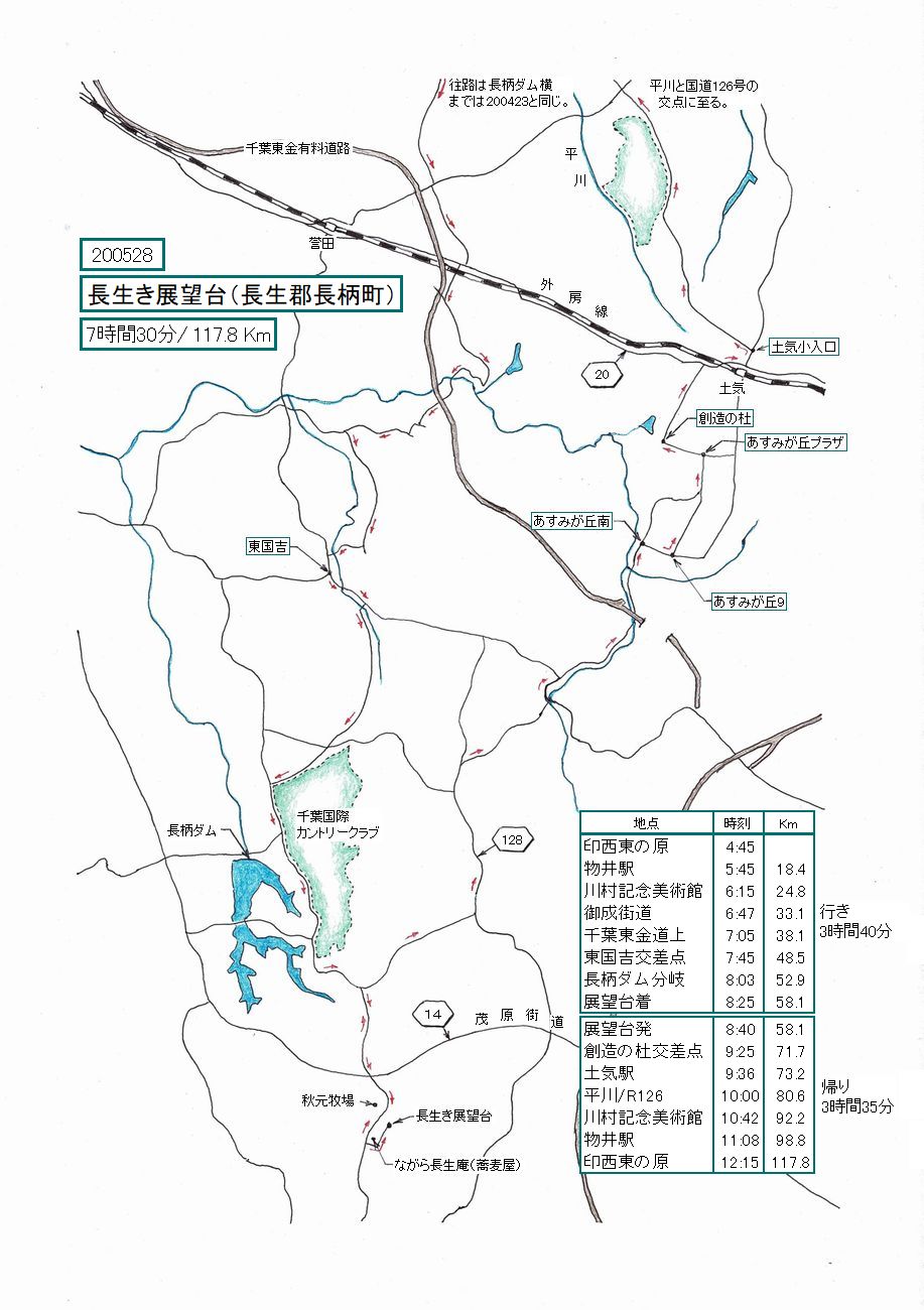 れだけだと寂しいので、その先の長生き展望台まで足を延ばし、帰りは土気を通る別の道をとりました。