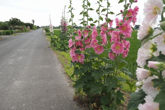 若草大橋から万歳橋に向かう農道にタチアオイが咲いていました。ここはいつも季節の花が絶えません。