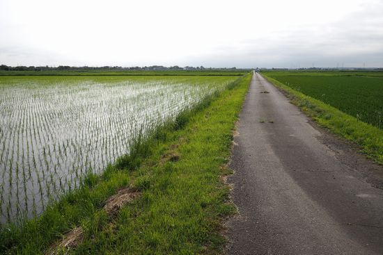 国道408号を越えると、川沿いの道が途切れます。よって、しばさき橋までは、田んぼの中の農道で
