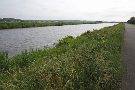 土手下の道を進みます。しかしそのまま行くと国道51号方向に行ってしまうので、草の中を土手の上に登り