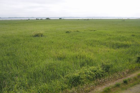 稲敷大橋から眺める妙岐の鼻の広大な芦原。
