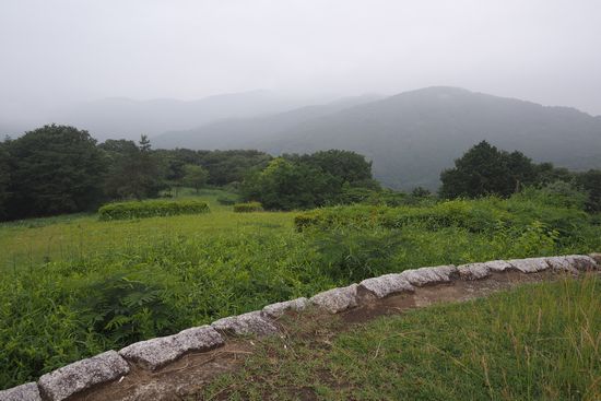 知れません。朝日峠の天候ですが、雲が垂れこめて、麓の一部が微かに見えるだけ、という残念なものでした。