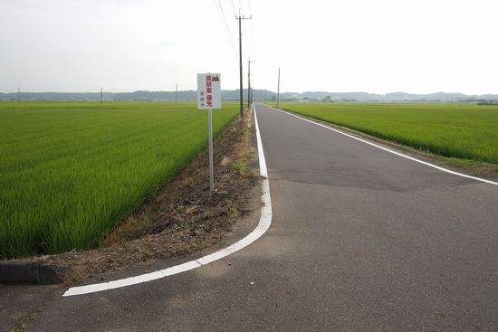 国道464の側道から北に向かう農道に入ります。電柱が並んでいるのが目印です。地図A地点。