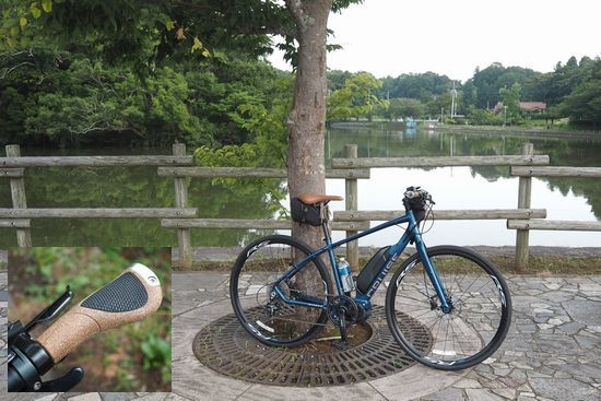 坂田ヶ池南側に着きました。ところで、今回、グリップとサドルを替えてきました。グリップは定評のある