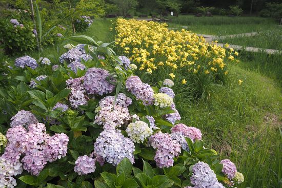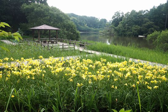 湿性植物園です。アヤメは既に終わり、蓮の開花はまだですが、ユウスゲの群落がありました。