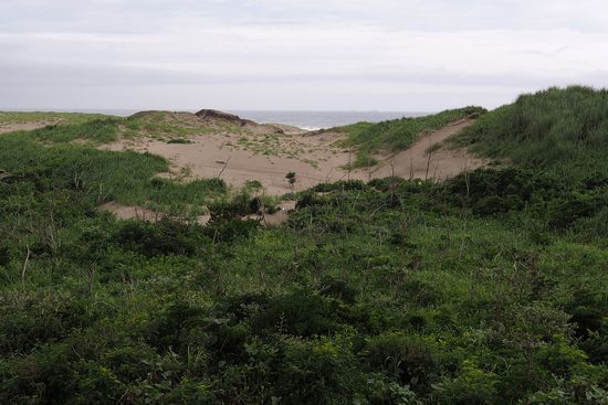 群生地の至近距離にシーサイド道路というのが通っていますが、道路わきの空地から鹿島灘が