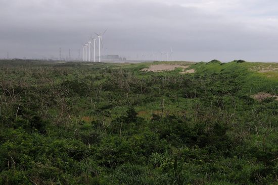 遠くに風力発電の風車が並んでいました。この荒涼とした地の果て感は、嫌いではありません。