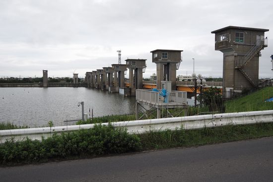印西から若草大橋で利根川を渡り、左岸のサイクリングロードをやって来ますが、ここ横利根水門でサイ