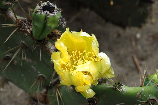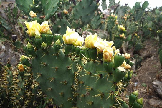 群生地の周囲は住宅地です。サボテンは黄色い花をつけていました。推定樹齢100年とか。