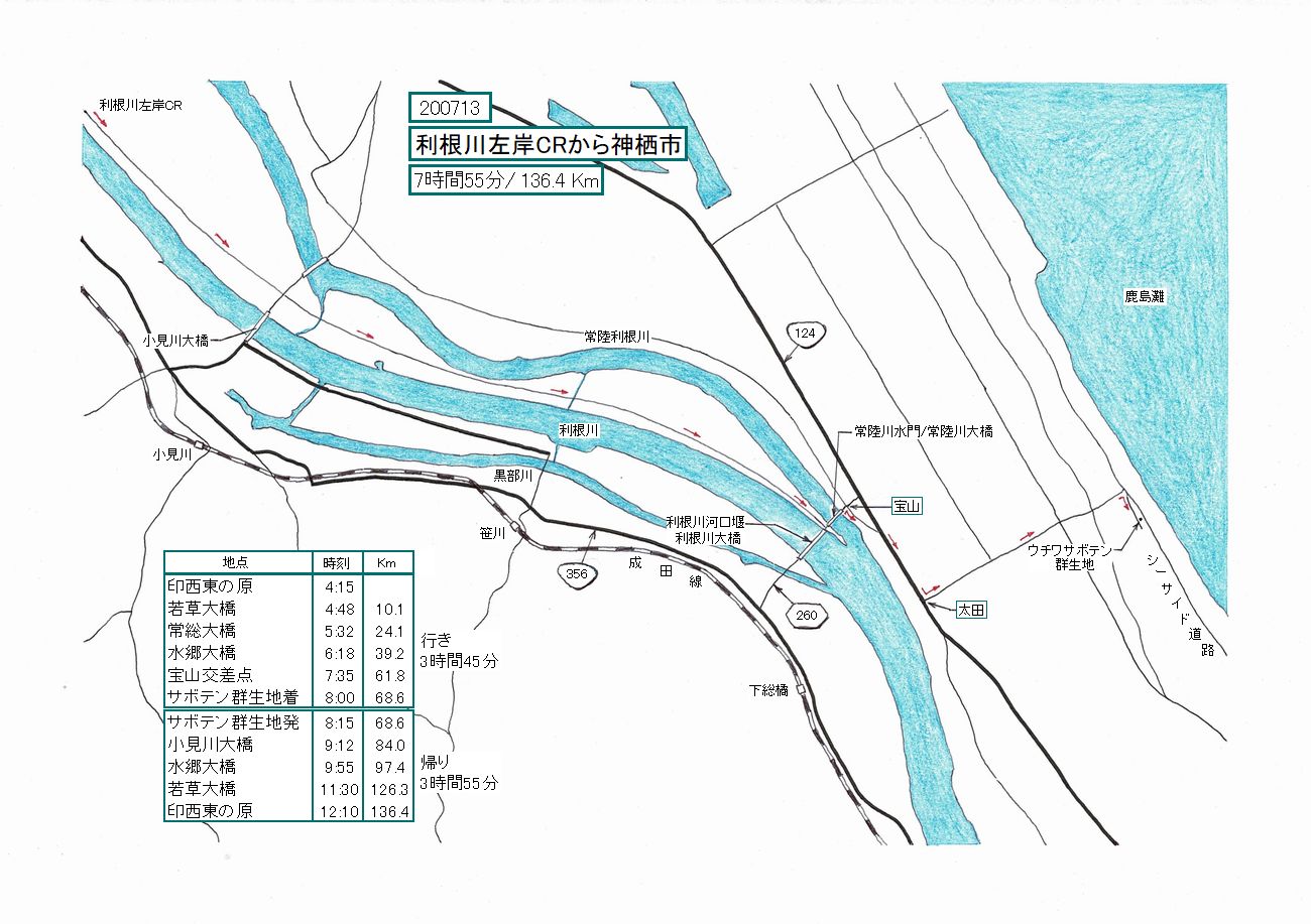 今回ちょっと失敗したのは、E-Bikeで行ったこと。あくまで平坦で広漠とした利根川を、風を友とし走るのは、E-Bikeではな