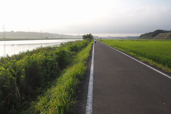 帰途、印旛沼でパンクしました。炎天下でチューブ交換すると熱中症になりそうだったので、空気の補充だけで、何とか帰