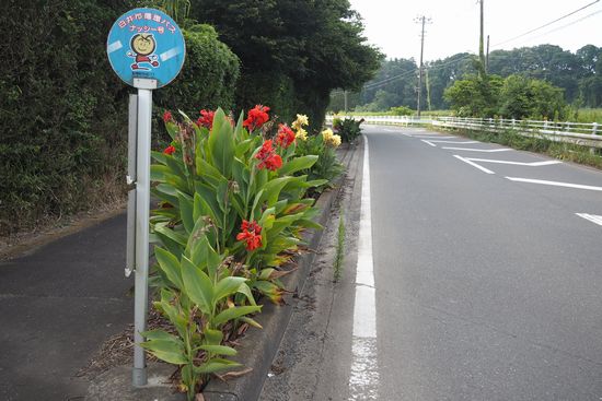 金山の 谷津下り来て 行く道は 花にちなみの カンナ街道