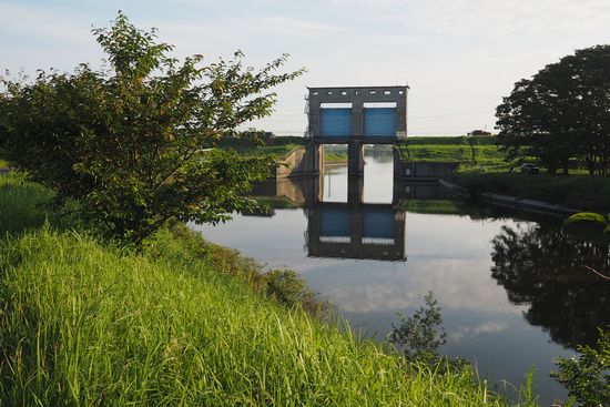 本埜から長門川沿いに利根川CRに出ます。長門水門が見えてきました。