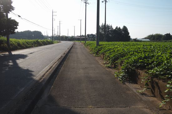 滑川観音脇交差点から坂を登り、台地の上の畑作地帯を進みます。植えてある作物はサツマイモ