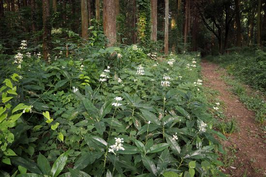 森深く 一筋続く 道の辺に 一群れ白き 藪茗荷咲く